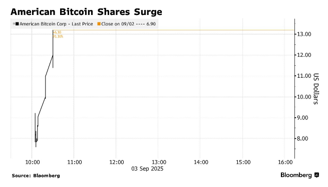 当日盘中股价一度翻倍后,American Bitcoin收盘报8.04美元。该公司宣称将通过纽约州、艾伯塔省(加拿大)和得克萨斯州的矿场设备积累比特币,这些设备均由另一家名为Hut 8(HUT.US)的加密货币企业提供。