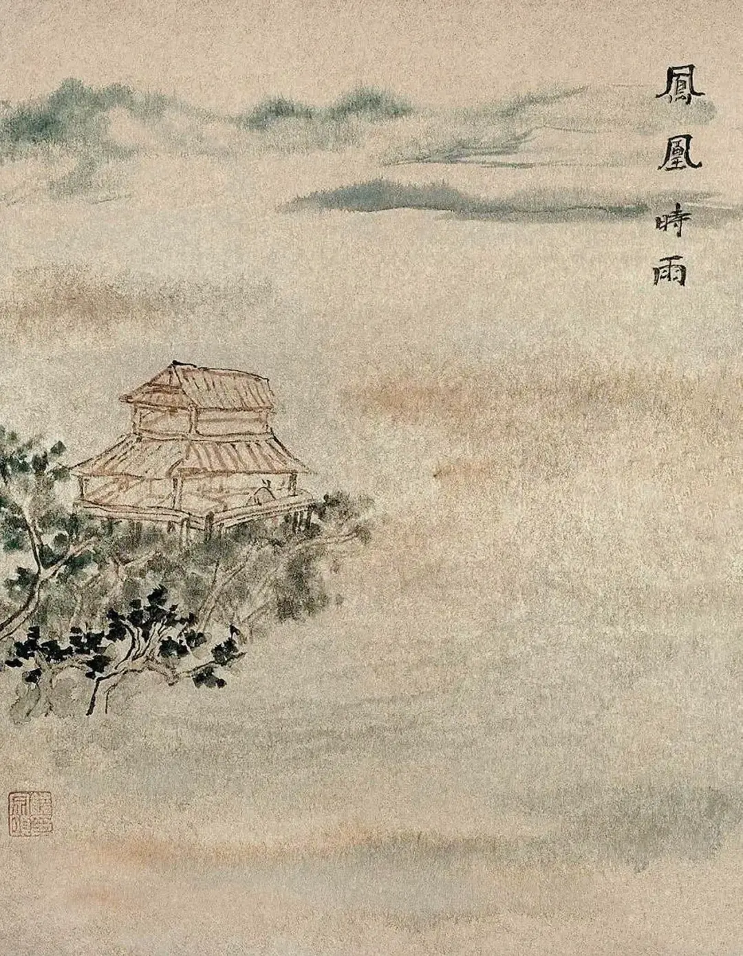 《凤凰时雨》以淡墨渲染春雨,飞鸟的动态轨迹与楼阁的静态结构形成张力。这种"动中取静"的笔法,源自石涛"一画之法"的哲学思辨,更暗含饶公对时间本质的理解——雨水冲刷的不仅是凤凰山的植被,更是历史尘埃对文化记忆的遮蔽。当观者凝视画面中氤氲的墨气,仿佛能听见八十八岁的画家在呢喃:"时光如雨,洗尽铅华方见本真。"
